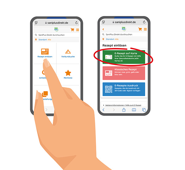 Mit der App „Apotheken direkt“ können Sie in jeder SaniPlus Apotheke Ihr Rezept bequem online einlösen.